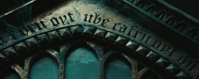 Aviez-vous par exemple remarqué que vers le milieu du film, lorsque Harry - revêtu de sa légendaire Cape d'Invisibilité - se retrouve face à face avec le mystérieux Miroir du Riséd, une inscription des plus étranges apparait au sommet de l'artefact enchanté ?