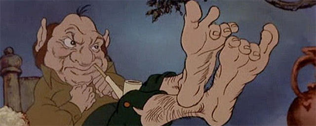 L'hommage de Peter Jackson à la version animée du Seigneur des Anneaux se résume à un bref plan en début de film, durant la fête de Bilbon, lorsque ce dernier prononce son discours. Brièvement, le spectateur peut découvrir le hobbit Odo Fierpied les doigts de pieds en éventail avec un plan quasi-identique à celui du film réalisé à la fin des années 70.