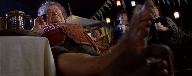 "J'ai découvert le Seigneur des Anneaux par le dessin animé de 1978. Bien qu'il soit très différent de notre film, je voulais qu'un plan y rende hommage, car cette version animée m'a donné envie de lire le livre", déclare Peter Jackson dans le commentaire audio de la version longue de La Communauté de l'Anneau. "C'est le plan où l'on voit Maître Fierpied. J'ai gardé le même angle que dans le dessin animé." La preuve ci-dessous.