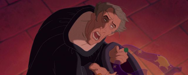Ainsi que l'ont récemment déclaré Gary Trousdale, Kirk Wise et Tab Murphy en interview pour le New York Times, le personnage le plus problématique pour obtenir le précieux sésame familial était évidemment le méchant Frollo. Après avoir fait de lui un juge (et non plus un archidiacre comme dans le roman de Victor Hugo), il leur fallait ensuite évoquer sa brûlante passion pour Esmeralda sans aller trop loin.