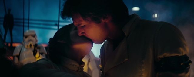 Cet échange émouvant est bien évidemment une jolie référence à une autre scène marquante de la saga Star Wars, qui survenait à la fin de L'Empire contre-attaque, épisode V de la saga. Juste avant d'être congelé dans la carbonite par l'Empire, Han Solo échangeait à l'époque un fougueux baiser avec Leia. La princesse lui lançait alors un vibrant "Je t'aime", auquel le contrebandier répondait avec le désormais mythique "Je sais".