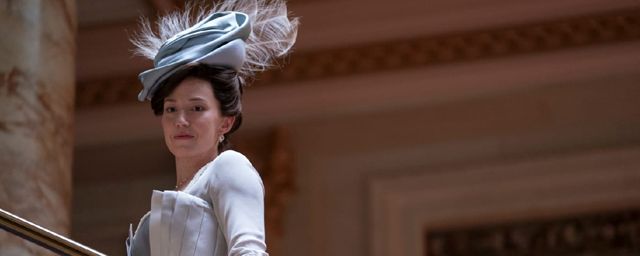 Elle est l’épouse d’un baron voleur, un terme péjoratif attribué aux nouvelles fortunes apparues aux Etats-Unis à la fin du XIXème siècle. Et la mère d’une jeune femme innocente et naïve, jouée par Taissa Farmiga, qui rêve du prince charmant.