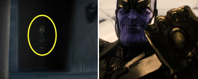 Quelques années plus tard, pourtant, dans la scène post-générique d'Avengers: L'ère d'Ultron, le même objet réapparaissait à l'écran, dans des circonstances bien différentes. Curieusement, il se retrouvait cette fois-ci au bras de Thanos, sans que le Titan ne se soit jamais rendu dans le palais d'Odin pour le lui dérober.