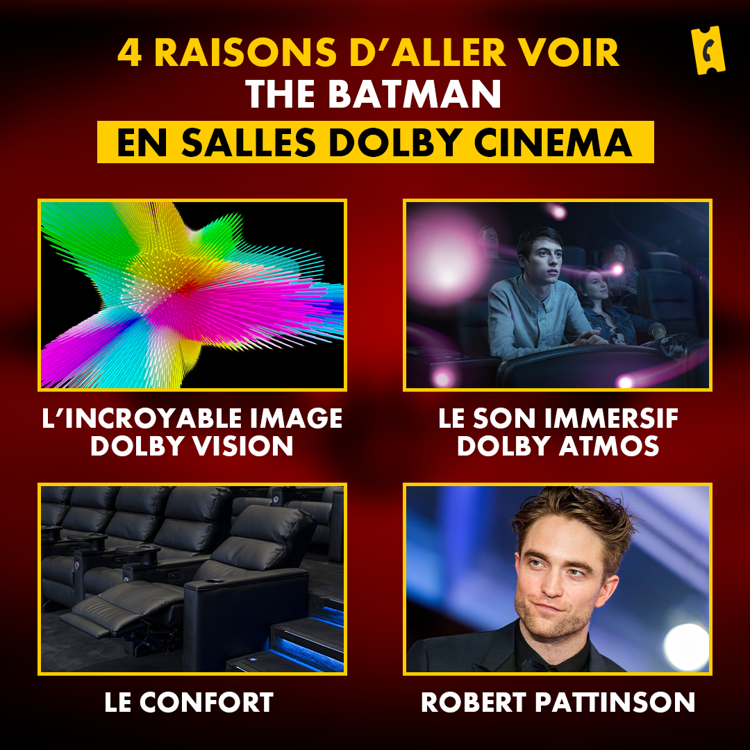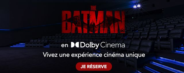 Réservez votre séance Dolby Cinema de THE BATMAN en sélectionnant l’option Dolby Cinema sous le menu "Expériences" de vos salles préférées.