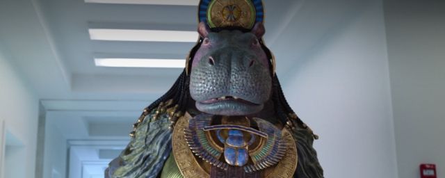 Hallucination due aux médicaments ou véritable apparition d’un hippopotame anthropomorphique ? La réponse est que cette créature est Taouret ou Taweret, la déesse égyptienne protectrice de l’accouchement et symbole de fécondité. C’est l’actrice Antonia Salib, qui prête sa voix à ce personnage, qui n’a pas d’équivalent dans les comics de l’univers Marvel.