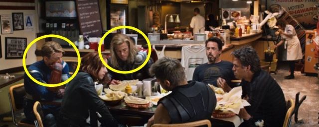 Seul petit problème : à cette époque-là, Chris Evans - qui prête ses traits à Captain America - avait déjà entamé le tournage de Snowpiercer, et s'était donc laissé pousser la barbe pour l'occasion. Afin que ce changement de pilosité ne se remarque pas sur le visage de son personnage, censé être rasé de prés, on peut ainsi le voir garder une main devant sa bouche.