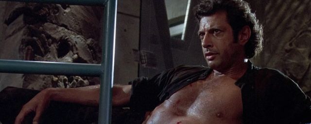 Ainsi que n'auront pas manqué de le remarquer les fans, la séquence fait évidemment référence à une célèbre scène de Jurassic Park où le chaoticien, blessé à la jambe par un T-Rex, avait inexplicablement ouvert sa chemise en s'allongeant sur une table.