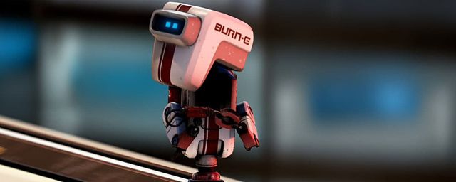 Mais cette scène contient également un clin d'œil à un autre film Pixar. En effet, les spectateurs les plus attentifs auront remarqué le petit robot BURN-E posé sur l'étagère de Burnside. BURN-E est le héros du court-métrage éponyme tiré de WALL-E sorti en 2008. Il s'agit du premier court réalisé par Angus MacLane, le metteur en scène de Buzz l'éclair. Il semblait donc logique que ce dernier y fasse référence.