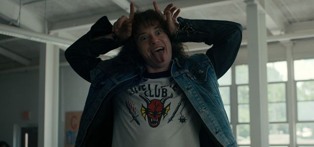 Dès sa première scène, Joseph Quinn vole la vedette à ses partenaires de jeu, Gaten Matarazzo (Dustin) et Finn Wolfhard (Mike). Il saute sur la table de la cafétéria de l'école, danse, tire la langue, fait un doigt d’honneur et jette de la nourriture au visage des élèves autour. Voilà comment faire une entrée remarquée.