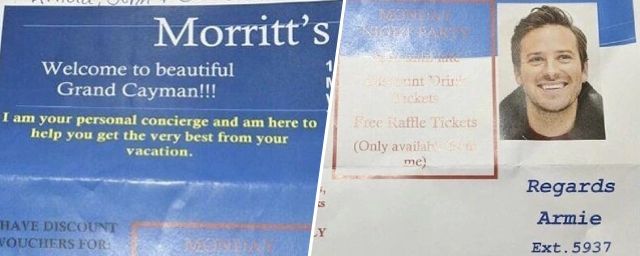 Peu après la publication du tweet, Variety a pu prendre contact avec l'avocat de Armie Hammer, qui leur a certifié que tout ceci était un canular. En effet, après avoir disputé quelques parties de golf avec le comédien, des employés du Morritt's Resort auraient fabriqué le faux flyer de toutes pièces et l'auraient distribué dans quelques chambres de l'établissement pour observer les réactions.