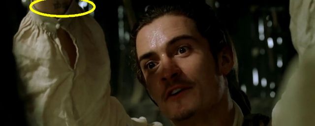 À très exactement 25 minutes et 7 secondes de film, lorsqu'on regarde avec attention le poignet droit (à gauche de l'écran, donc) d'Orlando Bloom, à condition de ne pas cligner des yeux, on peut observer la présence d'un petit tatouage.