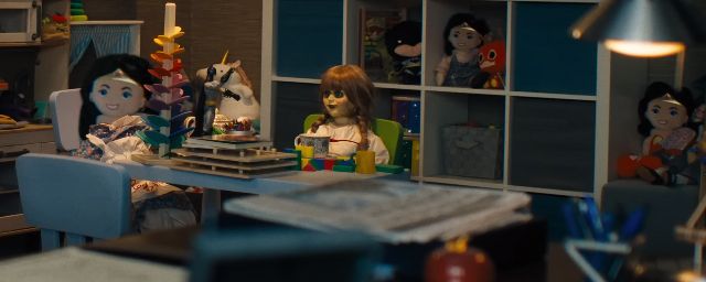 Parmi eux, il y a donc Annabelle, qui semble regarder une figurine de Batman. Aperçue au fond de la mer dans Aquaman, la poupée était chez un prêteur sur gages dans le premier volet des aventures du héros incarné par Asher Angel et Zachary Levi. Il faut donc croire qu'elle a tapé dans l'œil du pédiatre (P.J. Byrne), qui ignore visiblement tout des malheurs qu'elle provoque.