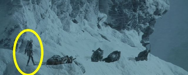 Alors que les neuf personnages évoluent péniblement dans le blizzard - la barbe constellée de stalactites pour les uns, les épaules presque ensevelies sous la neige pour les autres - on peut noter que l'un d'entre eux s'en sort beaucoup mieux que ses amis : l'Elfe Legolas, dont les pieds ne s'enfoncent dans la poudreuse, et qui ne s'embarrasse même pas d'un manteau.