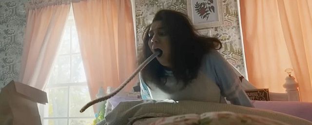 My Best Friend’s Exorcism s’amuse des clichés présents dans les films d’exorcisme, comme les jets de vomi ou les voix démoniaques, pour mieux les détourner. Ce décalage dans le ton, on le doit au roman d’origine certes, mais aussi à Christopher Landon, réalisateur des amusants Freaky et Happy Birthdead, qui a coécrit le scénario.