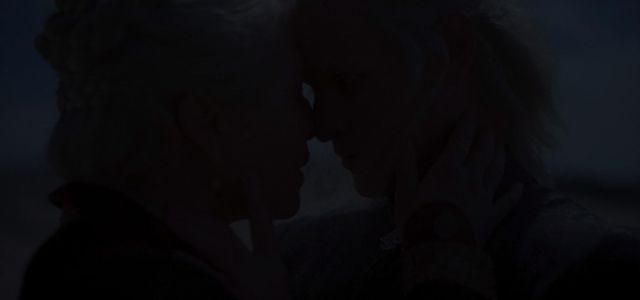 Sur la plage, Rhaenyra et Daemon promènent leur spleen côte à côte. Rhaenyra reproche à Daemon de l’avoir abandonnée alors qu’elle n’était qu’une enfant. Il lui répond qu’il l’a abandonnée justement parce qu’elle n’était qu’une enfant. Et ce qui devait arriver depuis des lustres, arriva. Le tonton et la nièce, tous deux veufs depuis moins d’une semaine, se livrent au brûlant corps à corps qui les chatouille depuis des années.