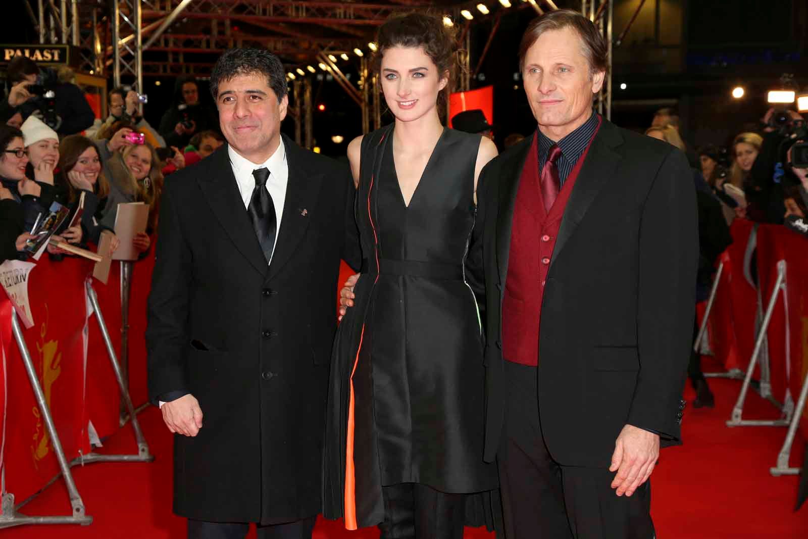 Hossein Amini, Daisy Bevan et Viggo Mortensen à la première de The Two Faces of January lors du 64ème festival international du film de Berlin.