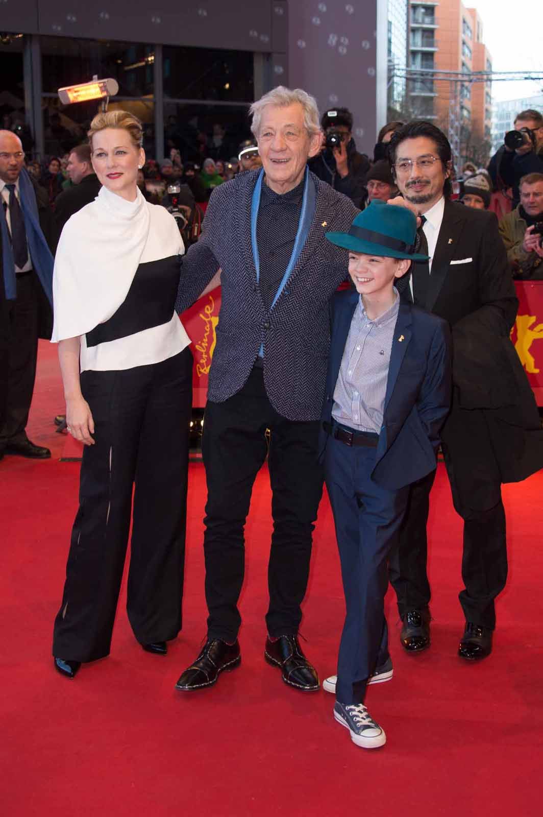 Laura Linney, Ian McKellen, Milo Parker et Hiroyuki Sanada à la première du film Mr Holmes lors de la 65ème édition du festival international du film de Berlin.