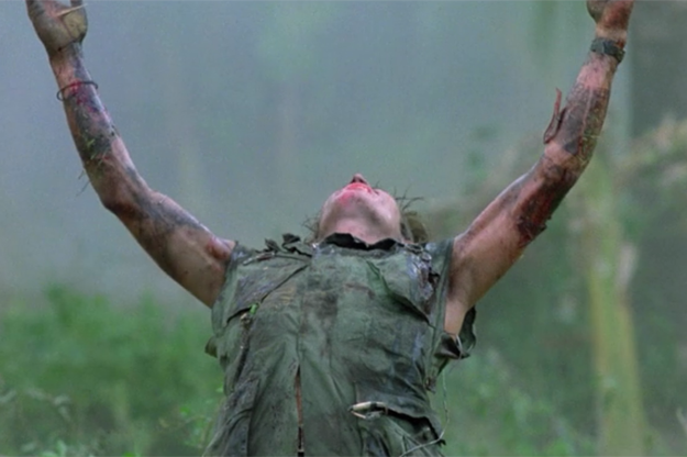 A quelques secondes de l'hélicoptère qui aurait pu lui sauver la vie, le sergent Grodin reste sur place et écope d'une rafale de tirs Viêt-Cong, littéralement crucifié par les balles. Une image qui restera gravée dans l'Histoire du cinéma. Tout sur le film...