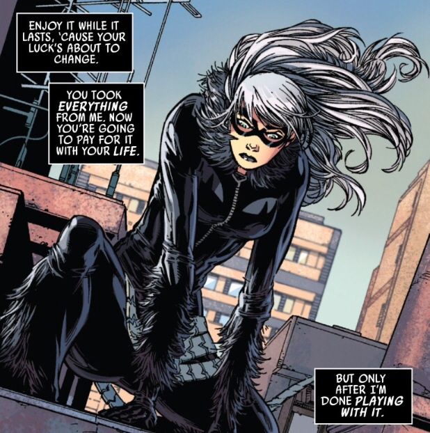 Cambrioleuse à la Robin des Bois, parfois alliée à Spider-Man. Rumeur de juin 2016.