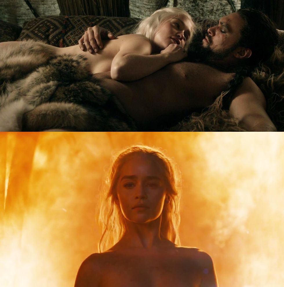 Les scènes de nu de GOT ont souvent été au coeur des débats. Emilia Clarke, souvent dénudée jusqu'en saison 3, avait d'ailleurs critiqué l'abus général de nudité en télé. L'actrice n'a, pour autant, pas tiré un trait sur ces scènes lorsqu'elles apportent au récit. Elle a ainsi réitéré l'expérience dans la saison 6, au cours de cette scène cruciale qui rappelait tout le pouvoir - enflammé - de Khaleesi.