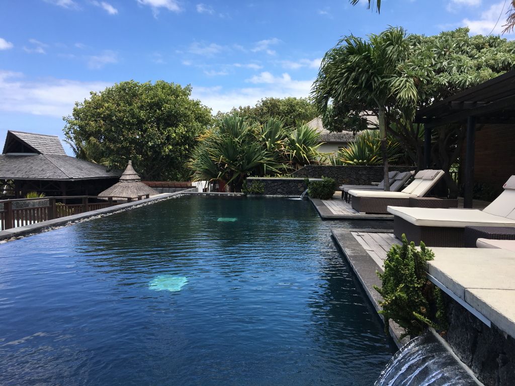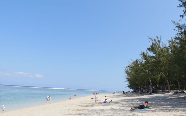 Devant le lagon de l'Hermitage les Bains.