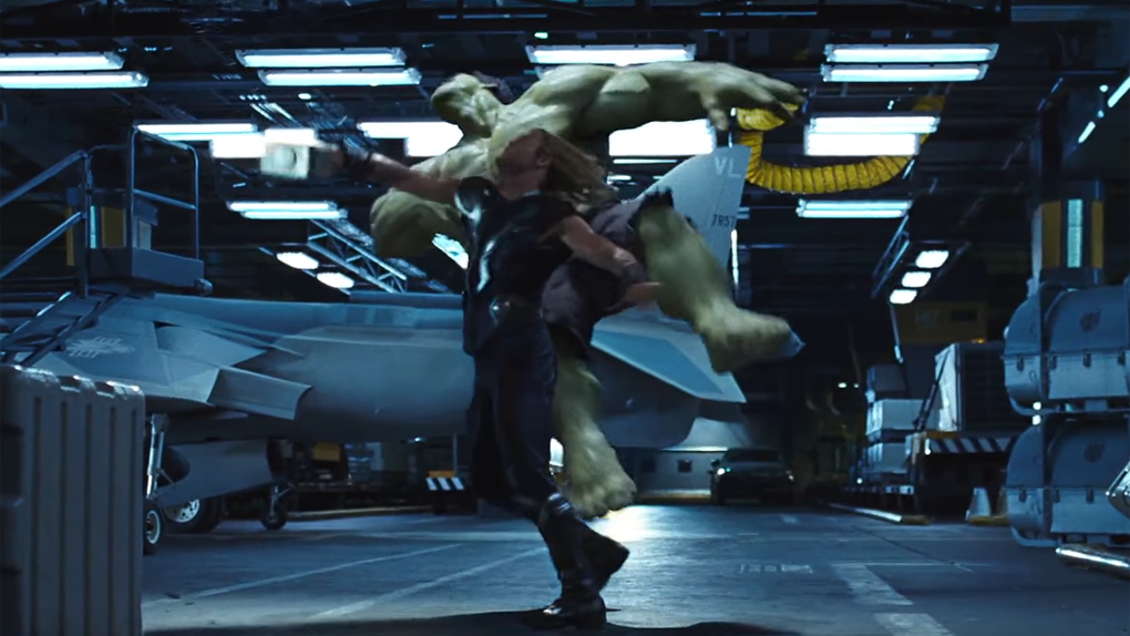 Lieu du combat : Dans l'Héliporteur du S.H.I.E.L.D., juste avant la bataille finale d'Avengers. Issue du combat : Après avoir pris l'avantage grâce à son fidèle marteau, Thor se retrouvait à nouveau en difficulté jusqu'à ce qu'un avion de chasse (heureusement pour le dieu nordique) ne détourne l'attention de Hulk en lui tirant dessus sans sommation. En attendant la deuxième manche dans Thor Ragnarok.