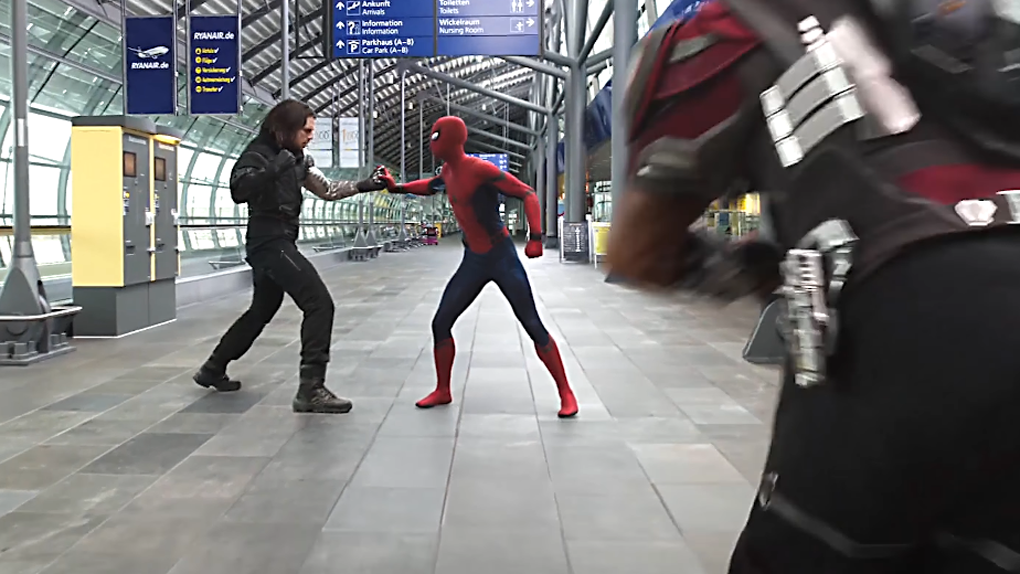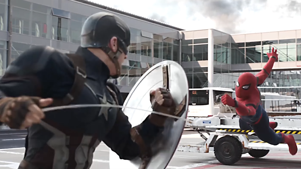Lieu du combat : L'aéroport de Leipzig-Halle en Allemagne, dans Captain America: Civil War Vainqueur : Captain America, qui se débarasse de l'Homme-Araignée en lui faisant tomber un couloir d'embarquement sur la tête.