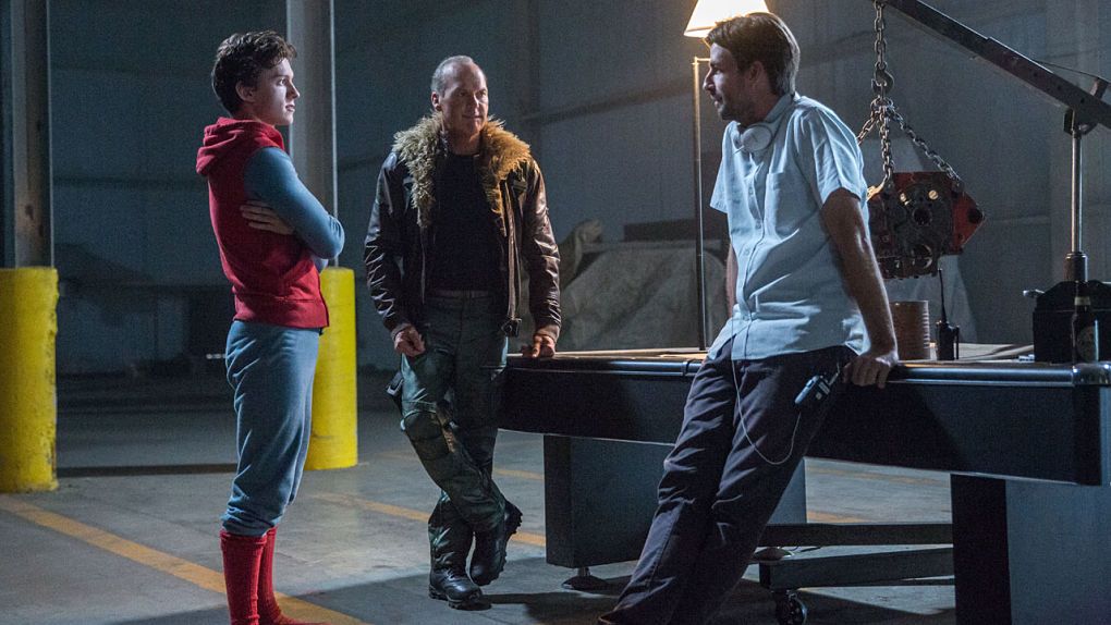Tom Holland face à Michael Keaton (le Vautour) et Jon Watts (le réalisateur)