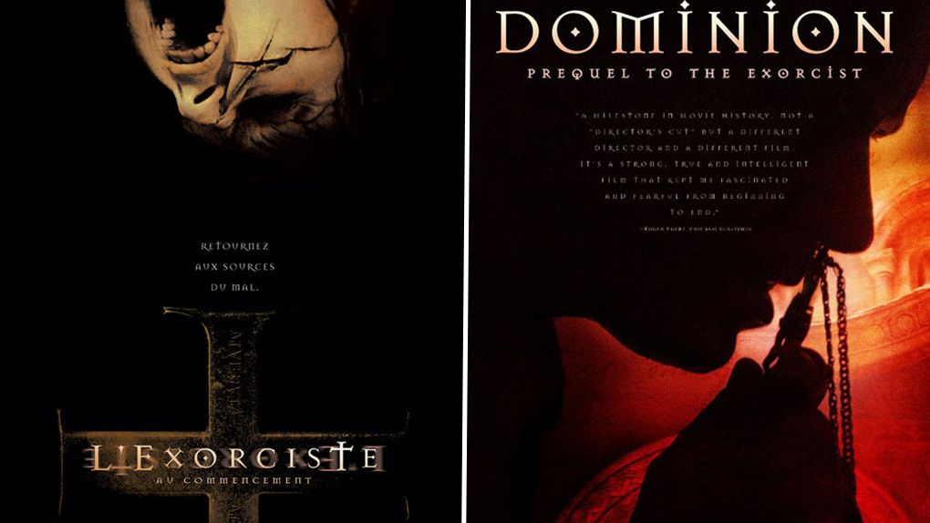 Si L'Exorciste : au commencement, sorti en 2004, et Dominion : Prequel to the Exorcist, sorti en 2005 dans quelques salles aux États-Unis, ont des intrigues similaires et ont tous deux Stellan Skarsgard comme acteur principal dans le rôle du Père Merrin jeune, c'est parce qu'à la base ils sont un seul et même projet. En effet, après une première version tournée par Paul Schrader jugée trop lente et pas assez horrifique par Warner, le film est retourné par Renny Harlin et L'Exorciste : au commencement finit par sortir. Mais face aux mauvaises critiques, le studio décide de sortir également la version de Schrader quelques mois plus tard, sous le titre de Dominion. Pour autant, l'accueil de cette "version d'origine" ne sera pas tellement meilleur...