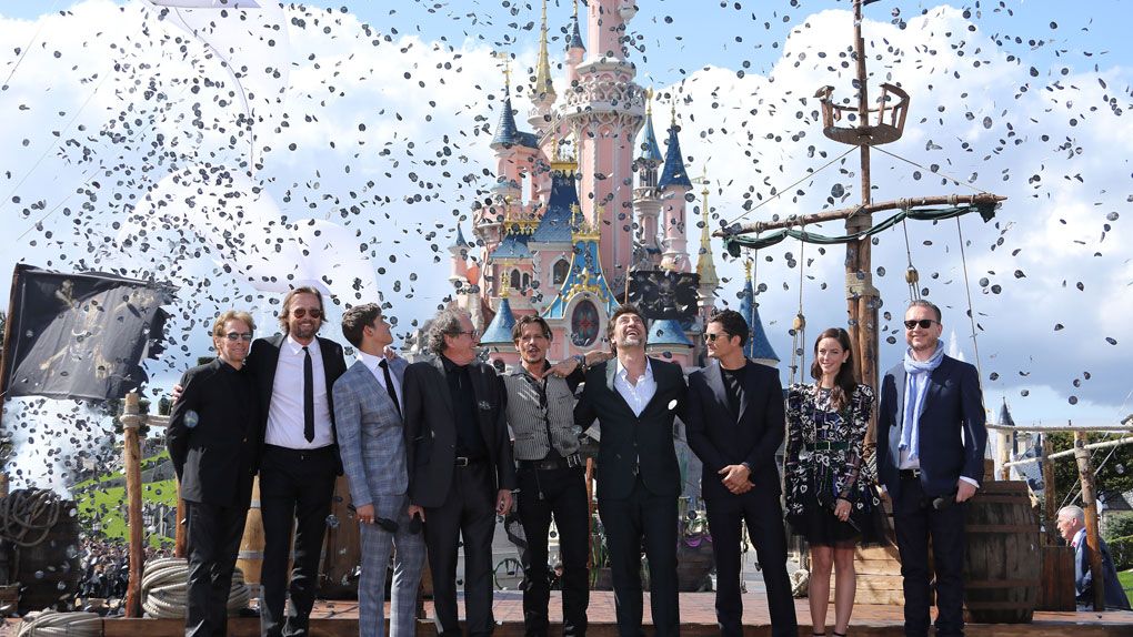 Dimanche 14 mai après-midi les visiteurs du Parc Disneyland Paris ont eu la surprise de voir débarquer sur le ponton d’un galion amarré devant le Château toute l’équipe du film Pirates des Caraïbes : La Vengeance de Salazar. Johnny Depp, Javier Bardem, Orlando Bloom, Geoffrey Rush, Jerry Bruckheimer, les réalisateurs et les jeunes Kaya Scodelario et Brenton Thwaites étaient en France pour l'avant-première européenne du film.