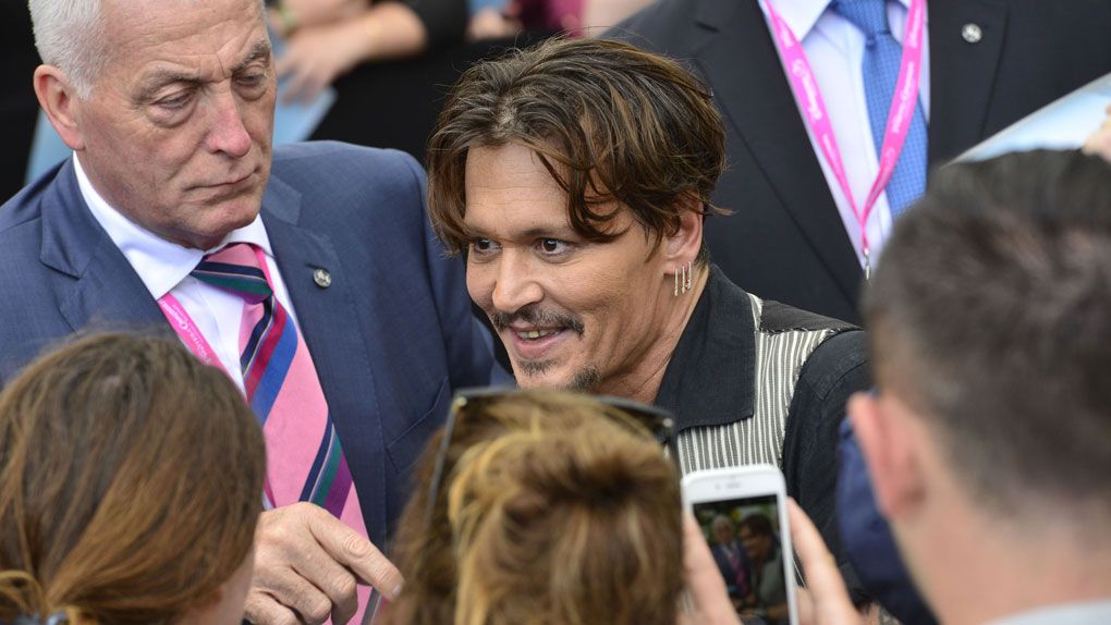 Johnny Depp salue ses fans.