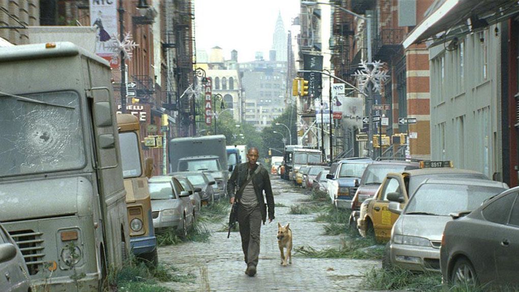 New York, après qu'un virus a décimé et transformé en mutants une bonne partie de la population. Alors qu'il n'y a plus personne pour peupler la ville - sauf les infectés qui ne sortent qu'à la nuit tombée et Will Smith - la nature reprend ses droits : les herbes grimpent sur les batîments et certains animaux sauvages (comme une biche) n'hésitent pas à s'aventurer dans ce qui était avant une jungle humaine.