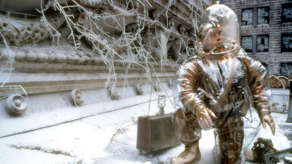 En 2035, l'humanité a été décimée par un virus inoffensif pour les animaux, les survivants se cachent dans des souterrains. Lorsque Cole (Bruce Willis) remonte à la surface pour récolter des échantillons, il est confronté à un ours, puis un lion, dans Philadelphie livrée à la nature. À la fin du film, la reconquête de la vie animale est annoncée à la radio et visible à l'écran : on voit des singes, un éléphant et un vol de flamants roses en pleine ville, des girafes sur l'autoroute…