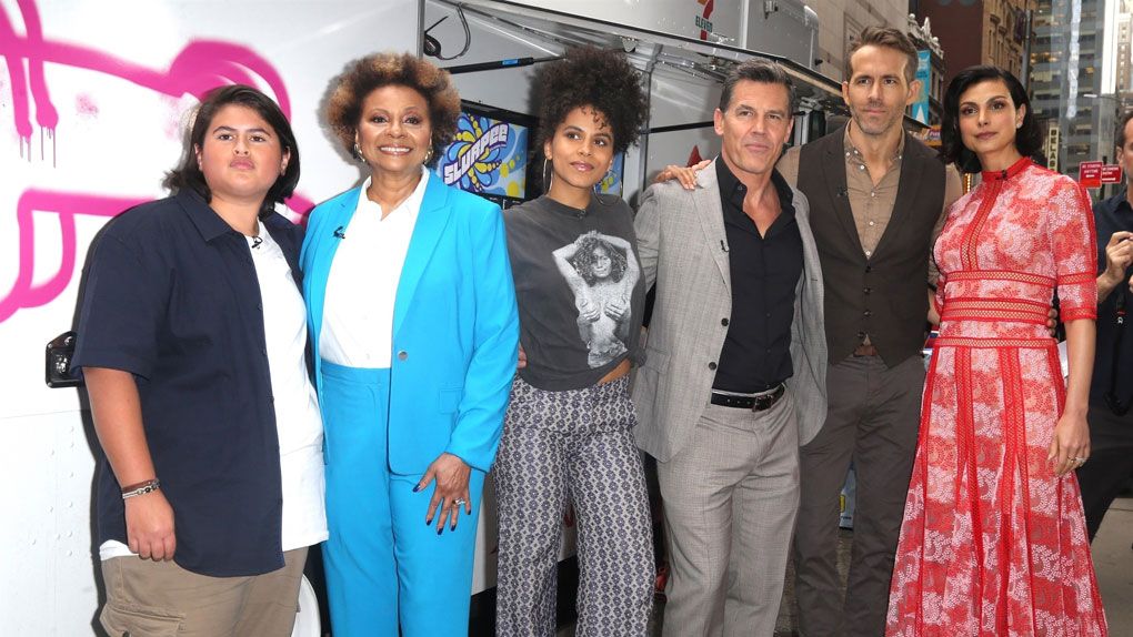 Julian Dennison, Leslie Uggams, Zazie Beetz, Josh Brolin, Ryan Reynolds et Morena Baccarin prennent la pose à New York, le 14 mai 2018.