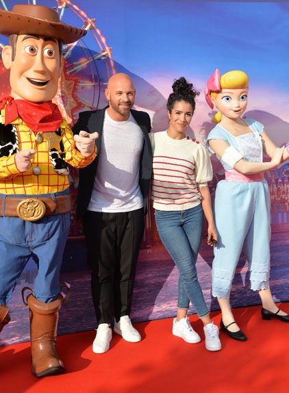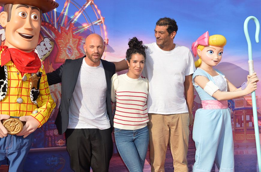 Franck Gastambide, doubleur de la peluche Bunny, et sa compagne, Sabrina Ouazani entourés par un autre couple : Woody et Bo.