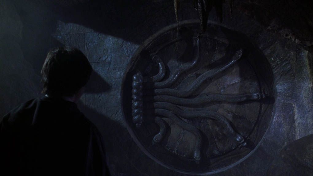... sur la porte qui permet d'accéder à la Chambre des secrets, dans le deuxième volet de la saga.