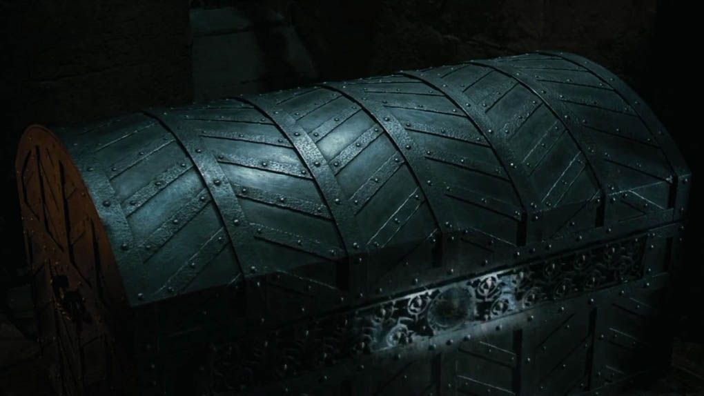 ... sur le mystérieux coffre d'Alastor Maugrey, dans Harry Potter et la Coupe de Feu.