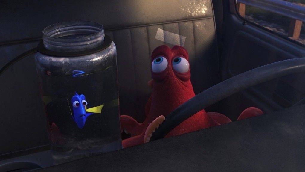 A la fin du Monde de Dory, cette dernière utilise les grands moyens, et décide de prendre le volant d'un camion pour rendre leur liberté aux pensionnaires de l'Institut de la vie marine.