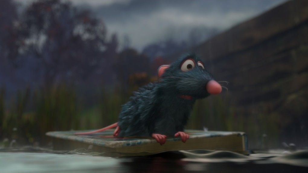 Au début de Ratatouille, alors que la colonie de Rémy est obligée de quitter son refuge, le jeune rat se retrouve séparé des siens et emporté par le courant d'une rivière, voguant sur les pages d'un livre de cuisine.