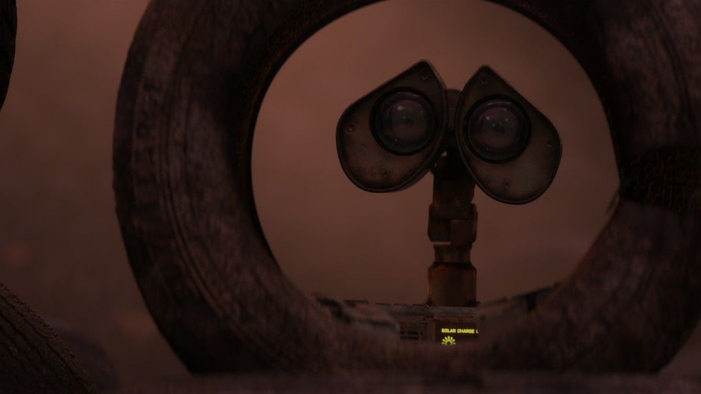 Pour échapper au redoutable laser de la mystérieuse EVE, WALL-E se réfugie sous cet amoncèlement de vieux déchets.