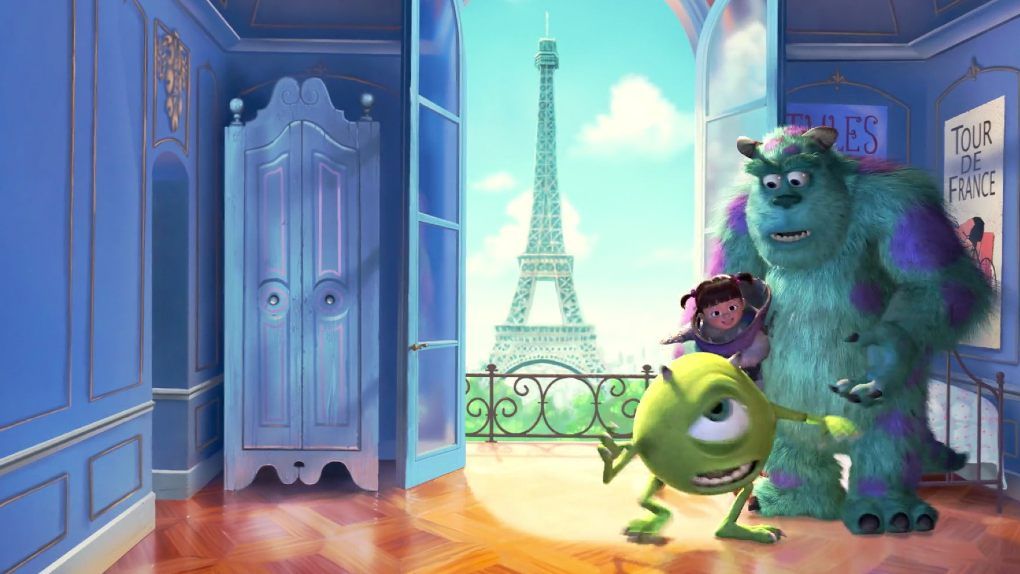 Non, cette vue de la Tour Eiffel ne se trouve pas dans Ratatouille, mais bien dans la dernière partie de Monstres & Cie, lorsque Bob et Sulli tentent d'échapper à Léon le Caméléon en passant de porte en porte.