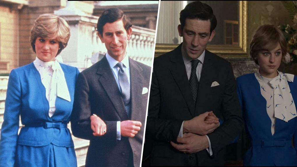 Après quelques mois de flirt, Charles demande en 1981 la main de Diana. Le couple se voit ensuite dans l'obligation de répondre aux questions des journalistes, dans cette scène qui est fidèle à la réalité.