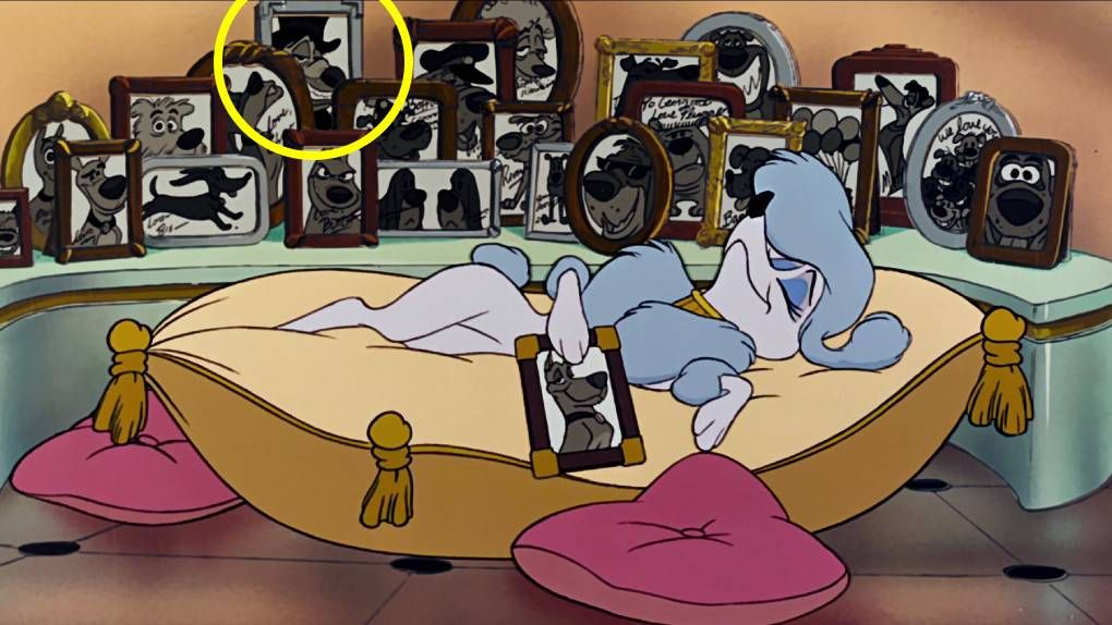 Le grand méchant de Basil, détective privé apparaît également dans un autre classique Disney sorti deux ans après. On peut en effet apercevoir sa photo ici, parmi les nombreux cadres représentant les admirateurs de Georgette, dans Oliver et compagnie.
