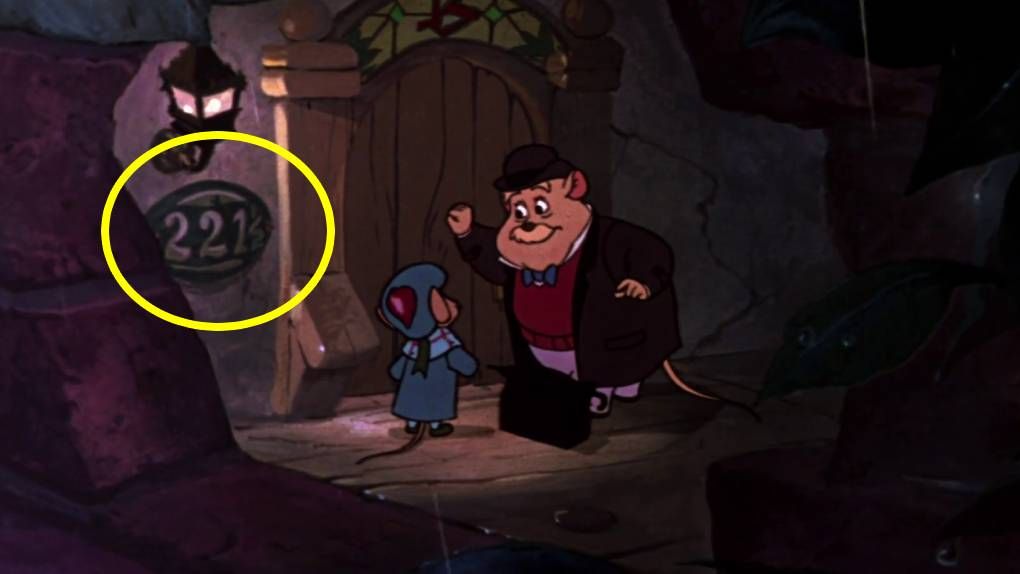A l'instar de la voie 9 3/4 dans Harry Potter, l'adresse de Basil, détective privé (disponible sur Disney ) présente un chiffre plutôt inhabituel. En effet, sachant que le rongeur vit à Baker Street, juste sous la maison du célèbre Sherlock Holmes, il habite donc au 221 1/2 de la rue (au lieu du 221B).