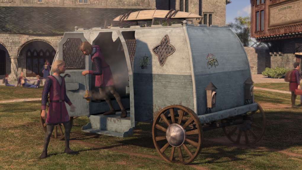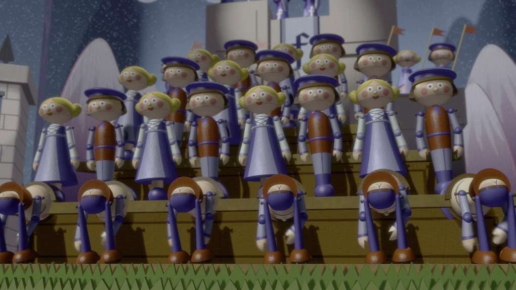 Peu après, alors qu'ils pénètrent à l'intérieur de la forteresse, Shrek et l'Âne ont droit à une petite chanson de bienvenue aux paroles assez cocasses. Entonnée par des automates, la mélodie rappelle aux visiteurs que "Duloc est un monde parfait", mais aussi quelques recommandations élémentaires : "Ne saute pas les talus, lave tes pieds, lave ton... nez !" Un vers auquel certains poètes auraient sans doute été tentés d'offrir une rime un peu plus triviale.