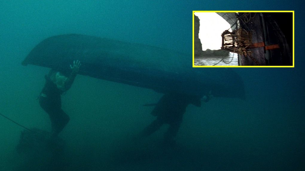 Dans la scène où Jack Sparrow et Will Turner utilisent une chaloupe pour marcher au fond de l'océan (en référence au Corsaire Rouge, long métrage de 1952 où Burt Lancaster utilisait la même technique), Will se coince malencontreusement le pied dans un casier à homards. Dans la scène suivante, on retrouve ce même piège à homards attaché au gouvernail du navire qui essaiera de prendre en chasse les deux personnages : une preuve que Will a ingénieusement su tourner cette petite maladresse à son avantage !
