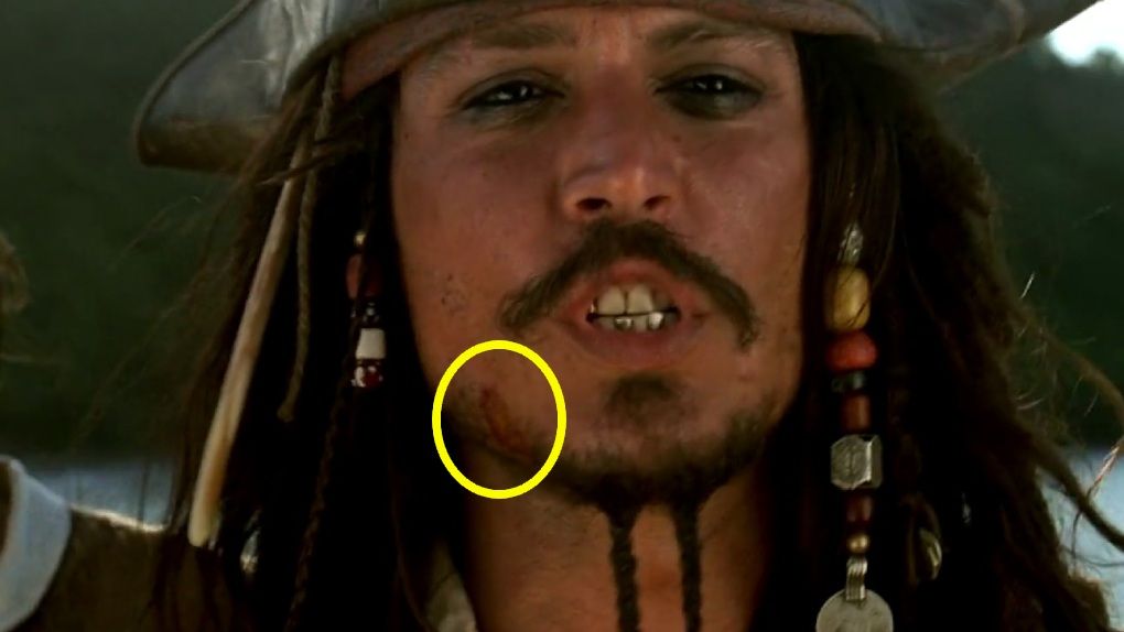 Selon IMDB, la tache rouge que l'on peut apercevoir sur le côté droit du visage de Jack Sparrow (et qui prend de plus en plus d'ampleur au fil des films) serait une plaisanterie initiée par Johnny Depp et par son maquilleur. En effet, certains fans vont jusqu'à imaginer que cette cicatrice serait un effet secondaire... de la syphilis.