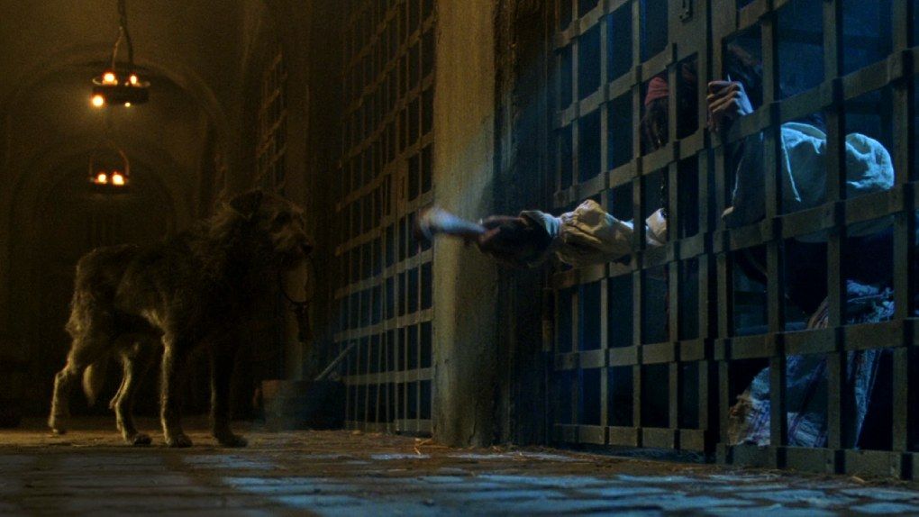 Deuxième référence à la légendaire attraction originale des parcs Disney ! La séquence au cours de laquelle Jack Sparrow, enfermé en prison, tente d'amadouer le chien qui détient les clés de sa cellule en lui tendant un os à moelle, fait évidemment penser à un segment emblématique du célèbre parcours.