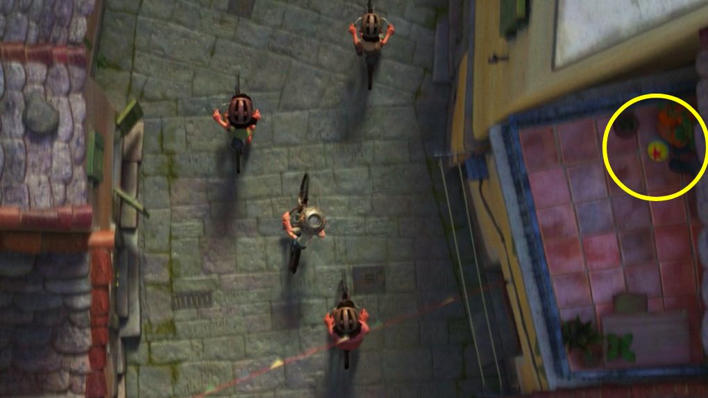 Lors de la course de vélos dans les rues de Portorosso, on peut apercevoir la petite balle Pixar sur l’un des toits des habitations. Cette fameuse balle a été introduite pour la première fois dans le court-métrage Luxo Jr. de John Lasseter en 1986 et apparaît régulièrement de manière cachée dans les films Pixar depuis.