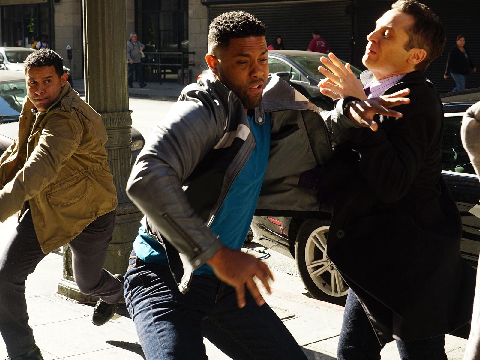 Espositpo (Jon Huertas) et Ryan (Seamus Dever) en plein action ! Saison 7 - épisode 19 : "Habeas Corpse" Diffusion le 30 mars sur ABC. Tout sur "Castle"